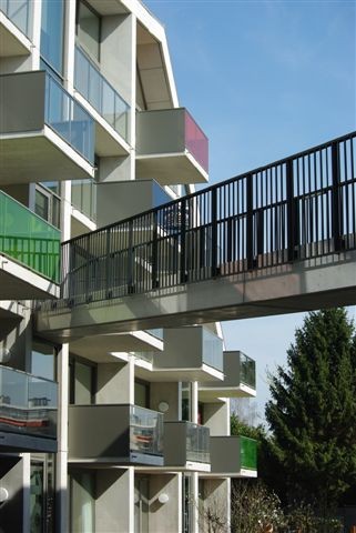 Door de opdrachtgever werd een programma vooropgesteld van een zestigtal woongelegenheden en commerciƫle units. Volumestudies toonden aan dat binnen de geldende bouwvoorschriften van het BPA een hoge dichtheid gehaald kon worden mits een kwalitatieve inrichting van de buitenruimten en ruimtebesparende oplossingen met veel oog voor de privacy. Het uiteindelijke ontwerp omvat 54 appartementen, 3 commerciƫle ruimten en een ondergrondse parkeergarage. Kostprijs: 7.376.349 euro (excl. btw)
