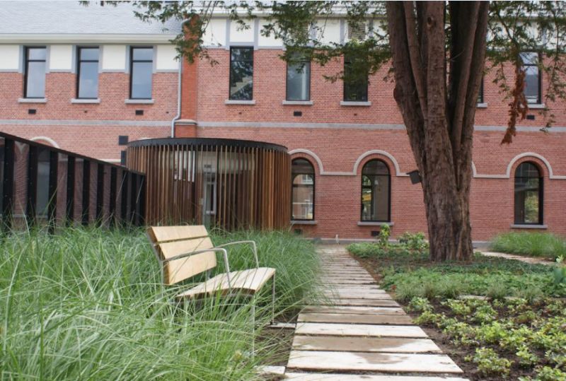 In 2002 kwam er een open oproep voor de uitbreiding van het Openbaar Psychiatrisch Zorgcentrum (OPZ) in Geel. Het betrof de restauratie van het oude ziekenhuis tot rehabilitatiecentrum. OMGEVING won met hun ontwerp, dat de oude elementen in ere herstelt. Op de open afdeling is plaats voor 31 patiënten die klaar zijn om terug deel te nemen aan de samenleving, maar toch nog een veilige haven behoeven. Daarnaast is er plaats voor twee therapiehuizen. Naast een masterplan diende OMGEVING ook een ontwerp voor de buitenruimten in.