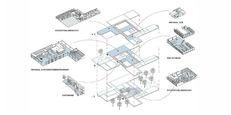 De Brussels Health Campus in Jette, een vruchtbare interactie tussen UZ Brussel, VUB en Erasmushogeschool Brussel, behoort tot de medische wereldtop. De Erasmushogeschool (EhB) wenst haar bestaande infrastructuur in de zuidelijke punt van de site uit te bouwen tot innovatieve onderwijscampus. Een doorgedreven renovatie dringt zich op. Het winnende ontwerp is gestoeld op de re-integratie van het gebouw in de omgeving, de heldere leesbaarheid en circulatie, de aandacht voor de gebruiker en de duurzame renovatiestrategie.