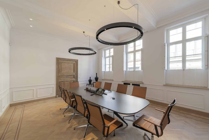 Volledige restauratie met respect voor de originele elementen en herbestemming tot een moderne kantoorruimte, uitgerust met alle hedendaagse voorzieningen.