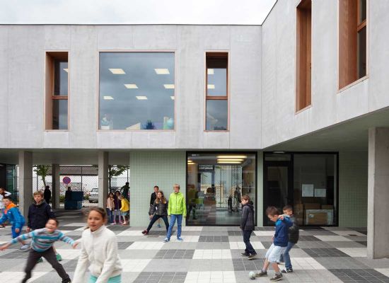 School op Pootjes is de toepasselijke naam voor de uitbreiding van een schoolsite te Rumst. LOW architecten is verantwoordelijk voor de opmaak van het masterplan, het ontwerp en de uitvoering van de omgevingsaanleg en de integratie van een nieuwe uitbreiding voor school Eikenlaar.