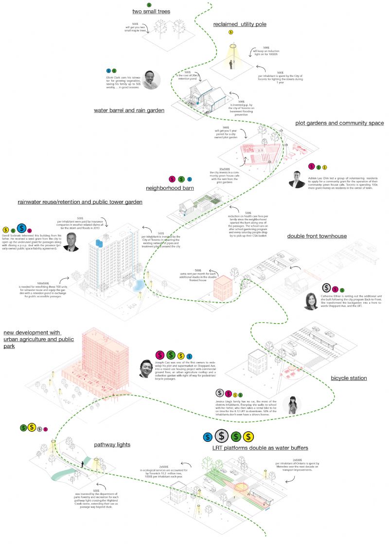 Plusofficearchitects en DELVA Landscape Architects wonnen de internationale ontwerpwedstrijd Middle City Passages in Toronto. Metrolinx wil een nieuwe sneltramlijn aanbrengen die maximaal geintegreerd wordt in het bestaande fiets- en voetgangerslandsschap. Door kleine projecten uit te werken langs het tracé van de sneltram en maximaal in te zetten op verbetering van de levenskwaliteit konden Plusoffice en DELVA de prijs binnenhalen.