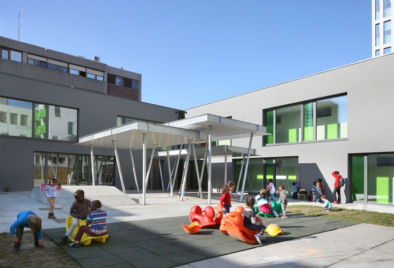 Het passiefbouw-project ‘Simons-Anvers’in de Brusselse Noordwijk bestaat uit drie delen: de renovatie en uitbreiding van de Héliport school, de bouw van een kinderopvang en de bouw van 51 hedendaagse appartementen. Het perceel wordt afgebakend door de Simonsstraat, Antwerpsesteenweg, Nicolaystraat en Frontispiesstraat. Het einde van de werken wordt voorzien op 1 juli 2014.