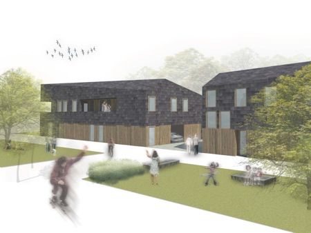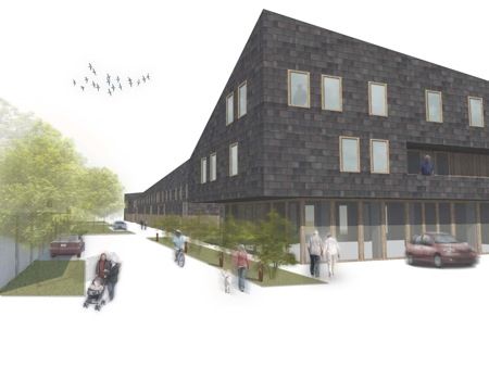 De site van de Geelse Huisvestingsmaatschappij is een smal, langgerekt perceel dat de drukke gewestweg Geelsebaan verbindt met een groen binnengebied, waarop in een tweede fase een verdere ontwikkeling omheen een centrale groenzone is gepland. Aan de gewestweg ontwerpt OMGEVING zeven appartementen voor senioren die zijn opgebouwd volgens de principes van levenslang wonen, een transparant commercieel gelijkvloers en vlot bereikbare fietsenberging. Flankerend aan de toegangsweg die als woonerf wordt ingericht, werden zes rijwoningen ontworpen met elk een private zuid gerichte tuin en een inpandige garage. Aan het uiteinde van de straat en gericht op het te ontwikkelen groengebied komt tenslotte een apart volume met vier parkwoningen als tussenvorm tussen woningen en appartementen: compacte woonvormen met elk voldoende privacy en een eigen tuin of buitenruimte.