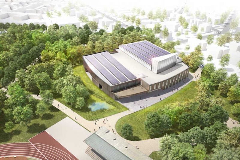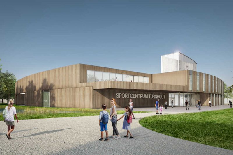 De 50 jaar oude en te kleine sporthal in het stadspark van Turnhout is aan vervanging toe. Midden in het stadspark, met zijn majestueuze bomen, bochtige lanen en paden en open grasvlaktes zal het nieuwe sportcentrum een prominente plek innemen. Met zijn afgeronde, houten gevels past het ontwerp naadloos in deze omgeving. Een uitgesproken luifel zorgt voor een maximaal welkom gebaar en achter de ramen is al een glimp op te vangen van de publieke bestemming. Als eyecatcher bekroont een glazen klimtoren het gebouw.