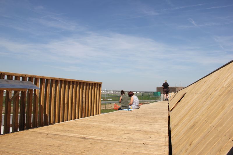 In Zaventem en Steenokkerzeel heeft Architecten Delobelle twee spottersplatformen ontworpen. De platformen zijn belevings- en verblijfselementen, onlosmakelijk verbonden met de luchthaven en zijn omgeving. Een blikvanger, die de op een spontane manier ontstane spottersplaatsen een bestemming en een gezicht geven.