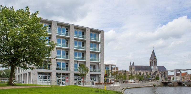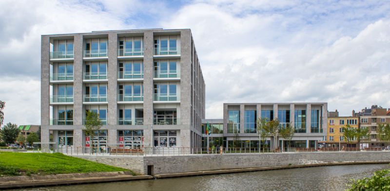 Stadskantoor Leiespiegel is een van de voornaamste exponenten van de vernieuwing van de stadskern van Deinze. De 100 medewerkers krijgen 8000 m² werkruimte, met daarin een stadsarchief, een cafetaria, een grote raadzaal, publieke vergaderruimten en individuele kantoren voor de burgemeester en het schepencollege. Het duurzame en flexibele gebouw springt meteen in het oog dankzij zijn verfijnde huid van glas, geanodiseerde aluminiumpanelen en Italiaanse natuursteen.