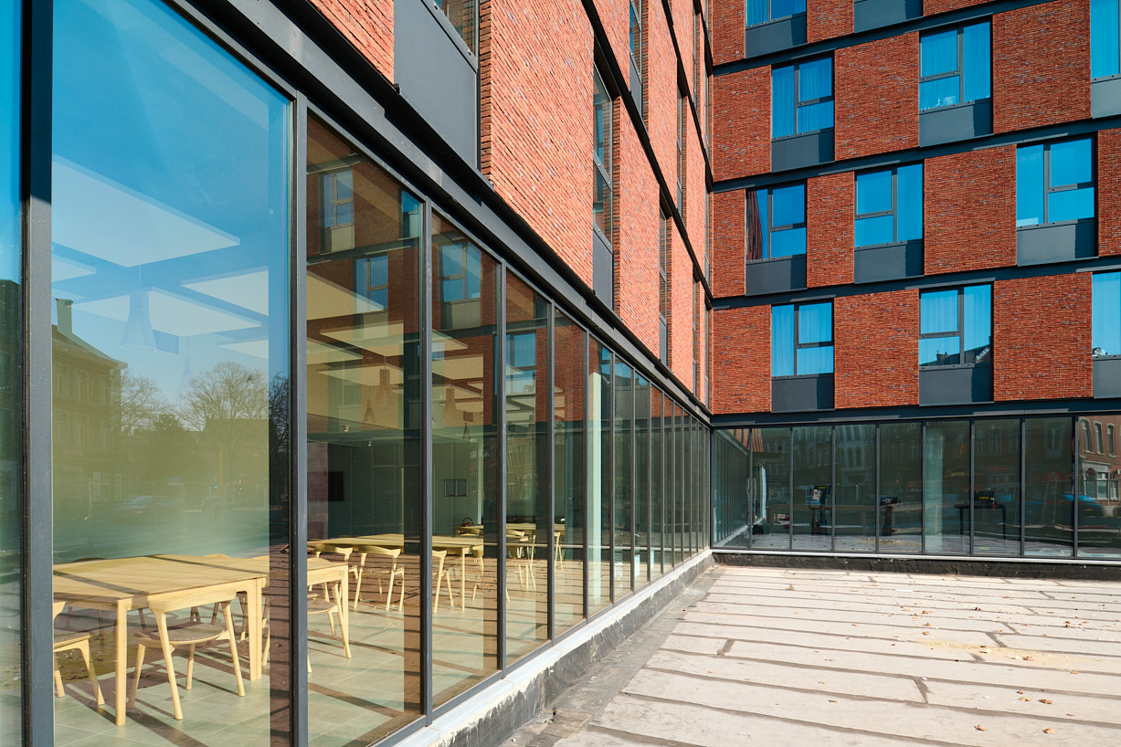 In de gloednieuwe studentenhuisvesting Ernest Mélot in Namen verblijven 216 studenten. Ze hebben hun eigen kamer, maar ook gemeenschappelijke voorzieningen zoals een studieruimte, een fitness- en ontspanningsruimte en een beveiligde fietsenstalling.