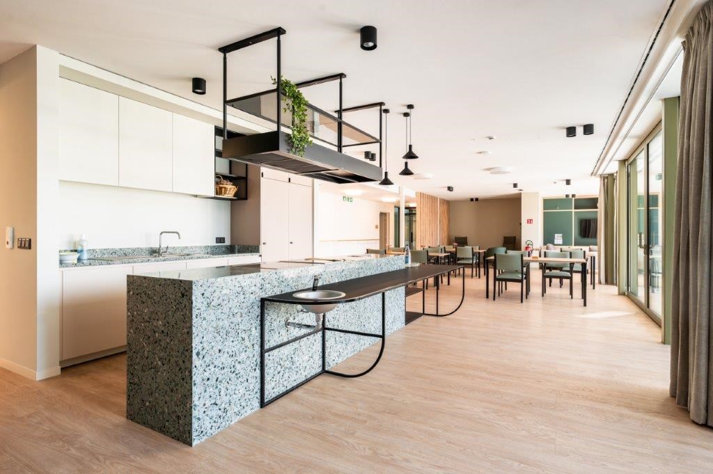 Van gedateerd rusthuis tot veelzijdige zorgcampus: Kortrijk maakte een kwantumsprong dankzij de realisatie van ’t Huis. Een van de voornaamste speerpunten in deze grootschalige vernieuwingsoperatie was de bouw van een nieuw woonzorgcentrum, ter vervanging van het fel verouderde WZC Sint-Jozef. Door de nadrukkelijke focus op een kleinschalig leefmodel – maximaal ondersteund door de fraaie architectuur – en de hoogwaardige interieurafwerking voelden de 132 bewoners zich er meteen thuis.