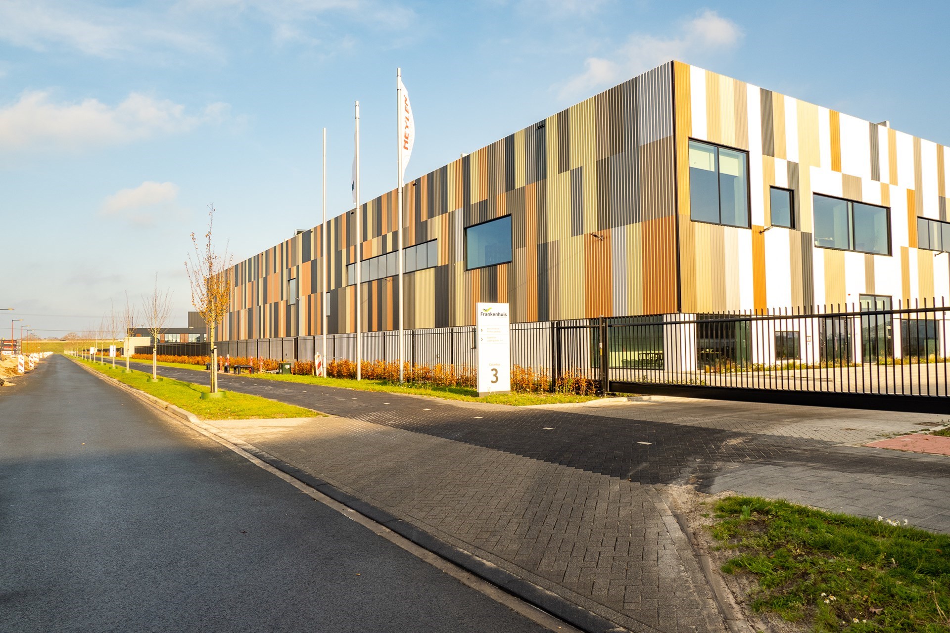 Een echte eyecather, dat is het bedrijfsgebouw van Frankenhuis op het XL Business Park in Almelo. "Als klanten voor het eerst langskomen zeggen we altijd: rij eerst maar langs die panden die allemaal hetzelfde zijn, dat andere pand is van ons.", lacht Bertram Wevers, general manager van de textielrecycling-gigant. Het gebouw, omgedoopt tot T-Port Circular 21, weerspiegelt niet alleen de circulaire activiteiten van Frankenhuis want ook het exterieur is deels circulair. Profielen, gemaakt door SAB-profiel, van restmateriaal in verschillende kleuren bezorgt het gebouw een unieke uitstraling.