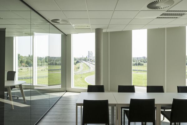 Met TAKE OFF zal ter hoogte van Flanders Expo geleidelijkaan een heus kantoor– en wooncomplex uit de grond rijzen. Het eerste veld van de hand van Bontinck Architecture & Engineering en studiebureaus Tecon en Boydens werd in 2013 al opgeleverd.