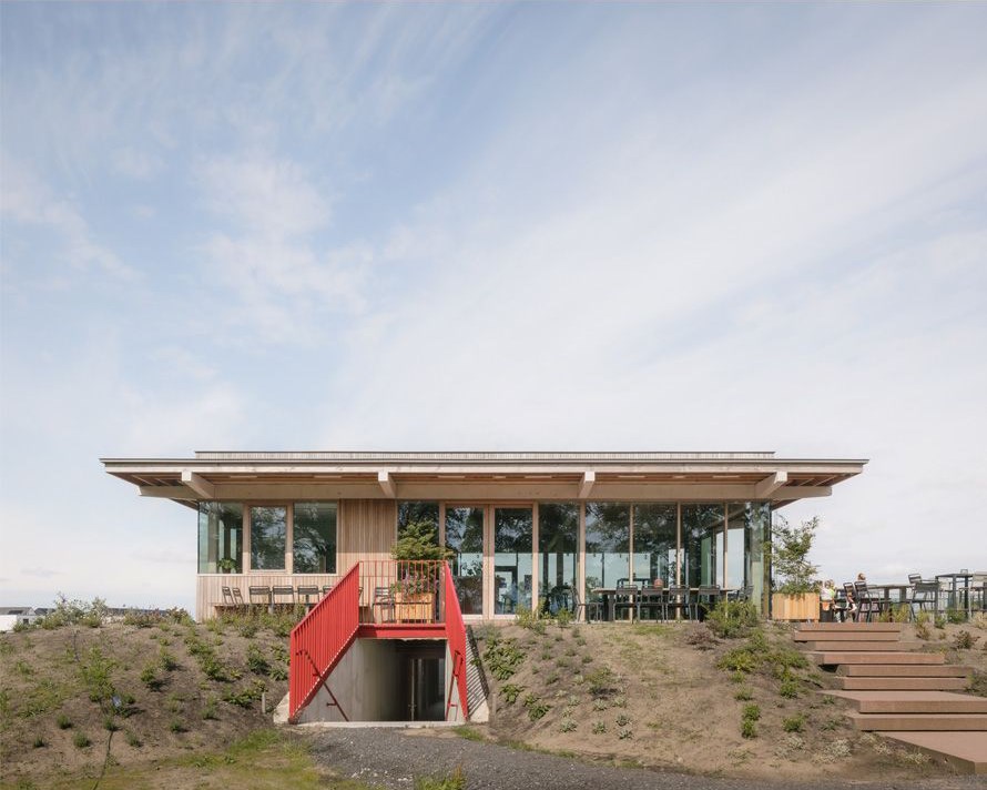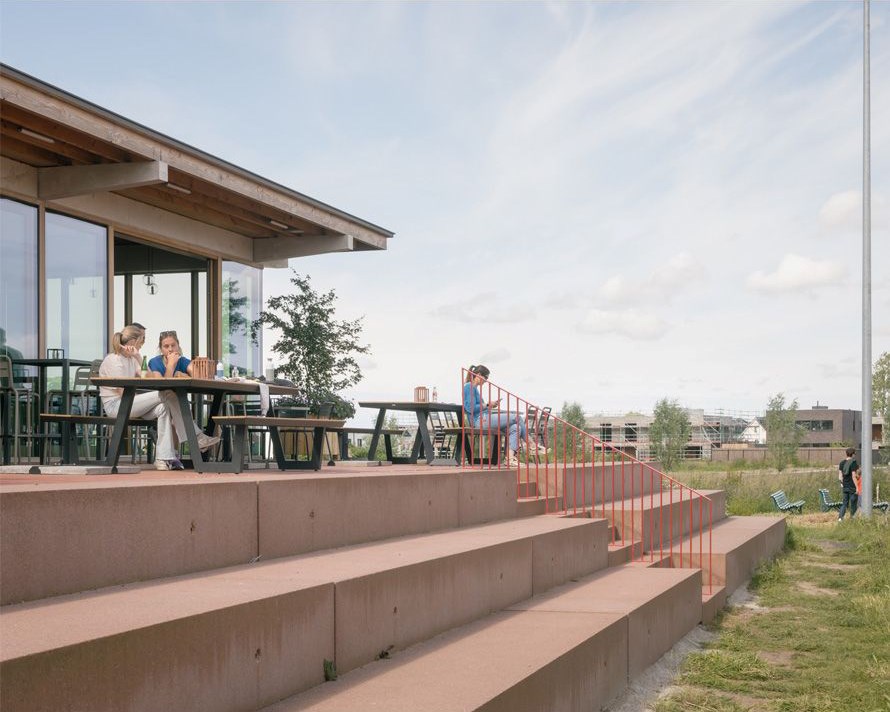 Tennisclub TC Ter Straeten in Varsenare heeft haar nieuwe clubhuis officieel geopend. Het gebouw, ontworpen door architectuuratelier Dertien12 uit Brugge, vormt een harmonieus geheel met de natuurlijke omgeving. Door slim gebruik te maken van de bestaande topografie nestelt het clubhuis zich deels in een heuvel, waarbij de technische ruimtes, kleedkamers en bergingen verzonken zijn in een groene berm. Zo blijven ze discreet aanwezig, zonder afbreuk te doen aan de openheid en ruimtelijkheid van de site.