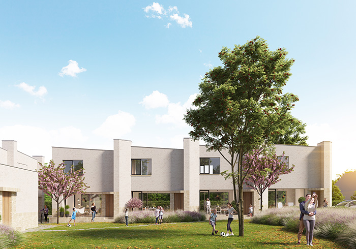 Op een hoekperceel in de Brugse deelgemeente Sint-Michiels, op een steenworp van de Kerkebeek, realiseerde het Gentse ontwerpbureau WE-S architecten het woonproject ‘Ten Boomgaard’. Het project omvat zeven starterswoningen, gegroepeerd rond een collectieve binnentuin volgens de begijnhoftypologie.