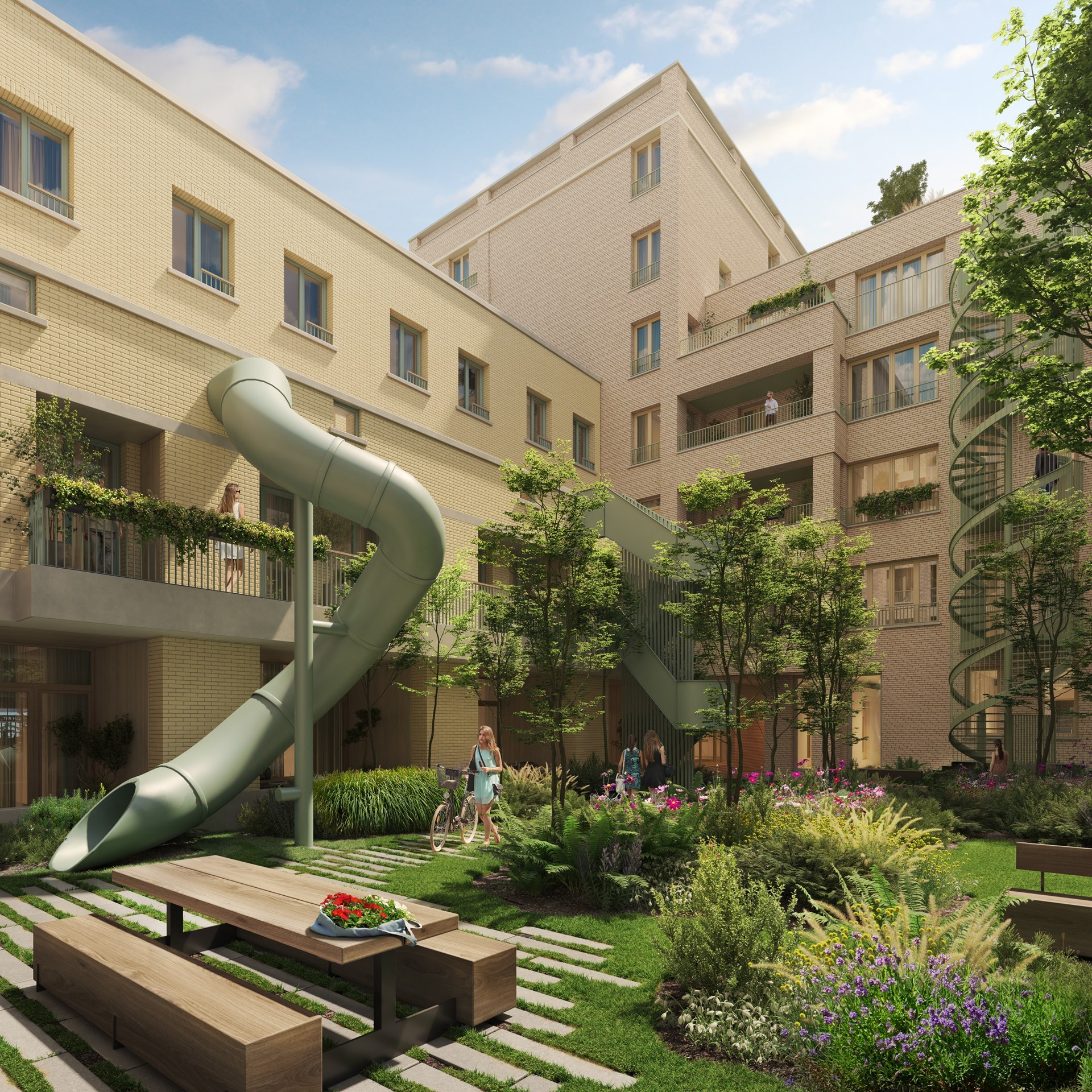 Antwerpen is traditioneel één van de steden die het moeilijk heeft om jonge gezinnen in de stad te houden. Om daarop een antwoord te bieden is het nieuwe project terhaven aan het Kattendijkdok helemaal ontworpen op maat van gezinnen. Door het Antwerpse bureau BULK Architecten en General Architecture uit Zweden de handen in elkaar te laten slaan, is een gebouw ontworpen met 67 appartementen die een pak ruimer zijn dan de traditionele nieuwbouw. Er is ook een glijbaan als trap naar de binnentuin en voldoende bergruimte voor (kinder-)fietsen en kinderwagens. De grondwerken zijn ondertussen gestart. Tegen eind 2024 zou begonnen worden met de ruwbouw van de bovenliggende verdiepingen. In het najaar van 2026 zouden de eerste gezinnen hun intrek kunnen nemen.