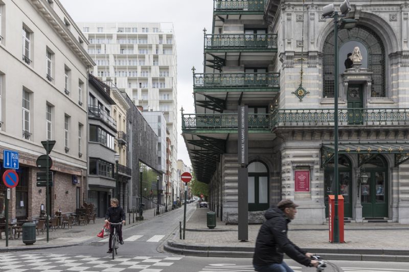 Dit modernistisch kantoorgebouw dichtbij de Brusselse kanaalzone en het Noordstation kreeg een herbestemming tot gemengd woonproject met 156 appartementen verspreid over de toren en een bijgebouw, en kantoren en diensten in de plint. De witte gevel bekleed met terrassen maakt van een relatief ‘harde’ en gesloten modernistische toren een open en communicatief woongebouw dat het leven naar de gevel brengt.