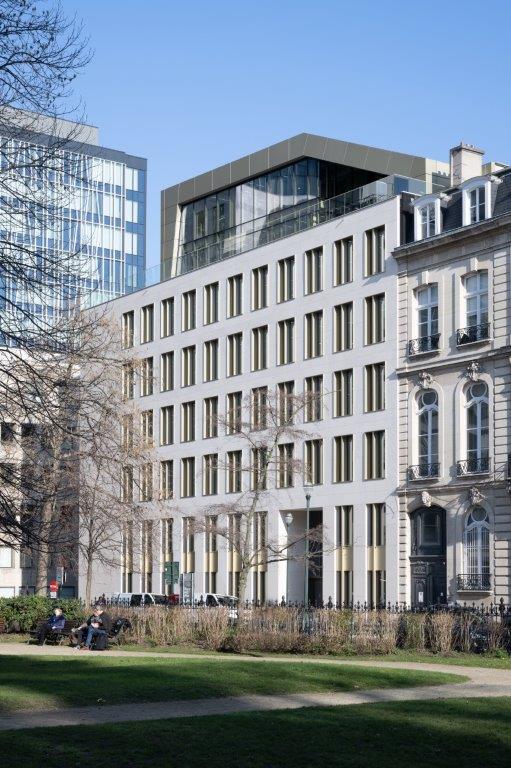 Met zijn schitterende ligging op het Frère-Orbansquare, in het hart van de Europese wijk in Brussel, is The First een project uit de duizend. Het omvatte de renovatie en herbestemming van een verloederd tertiair gebouw dat dateerde uit de jaren 60 en dat in het verleden plaats bood aan de Raad van State. Het complex kreeg een gemengde invulling en kan pronken met een BREEAM Excellent-certificaat dankzij een nadrukkelijke focus op koolstofneutraliteit en biodiversiteit.