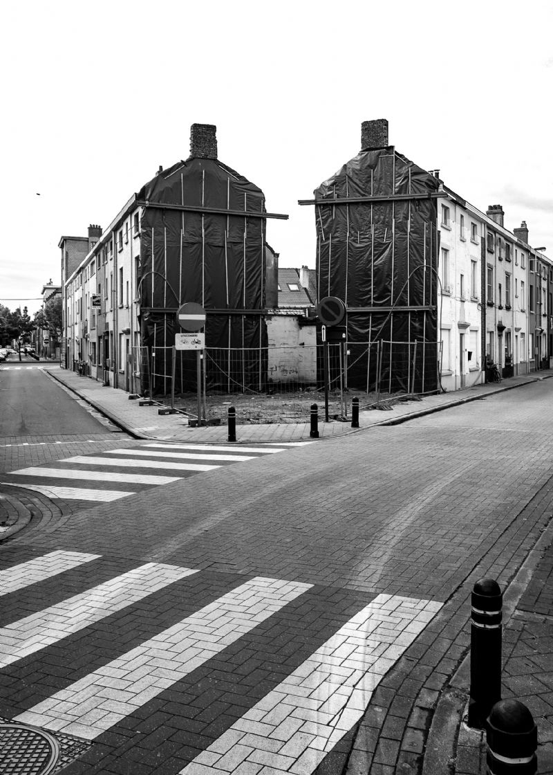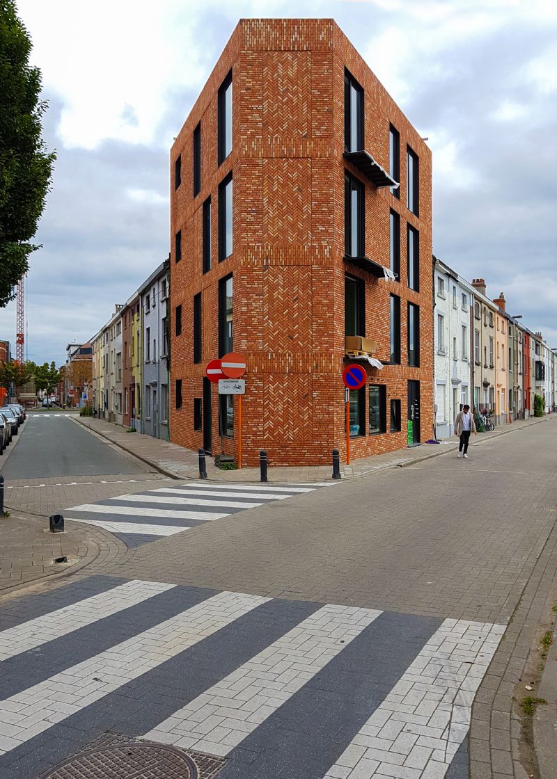 Aan de Brugse Poort in Gent hebben drie verwaarloosde hoekpanden plaatsgeruimd voor een woonzorgproject waar mensen met een diagnose van autisme (weliswaar zonder verstandelijke beperking) in een aangepaste woning zullen kunnen samenleven met ‘valide’ mensen in veertien zorgunits. Het ontwerp is van de hand van DENC!-STUDIO.
