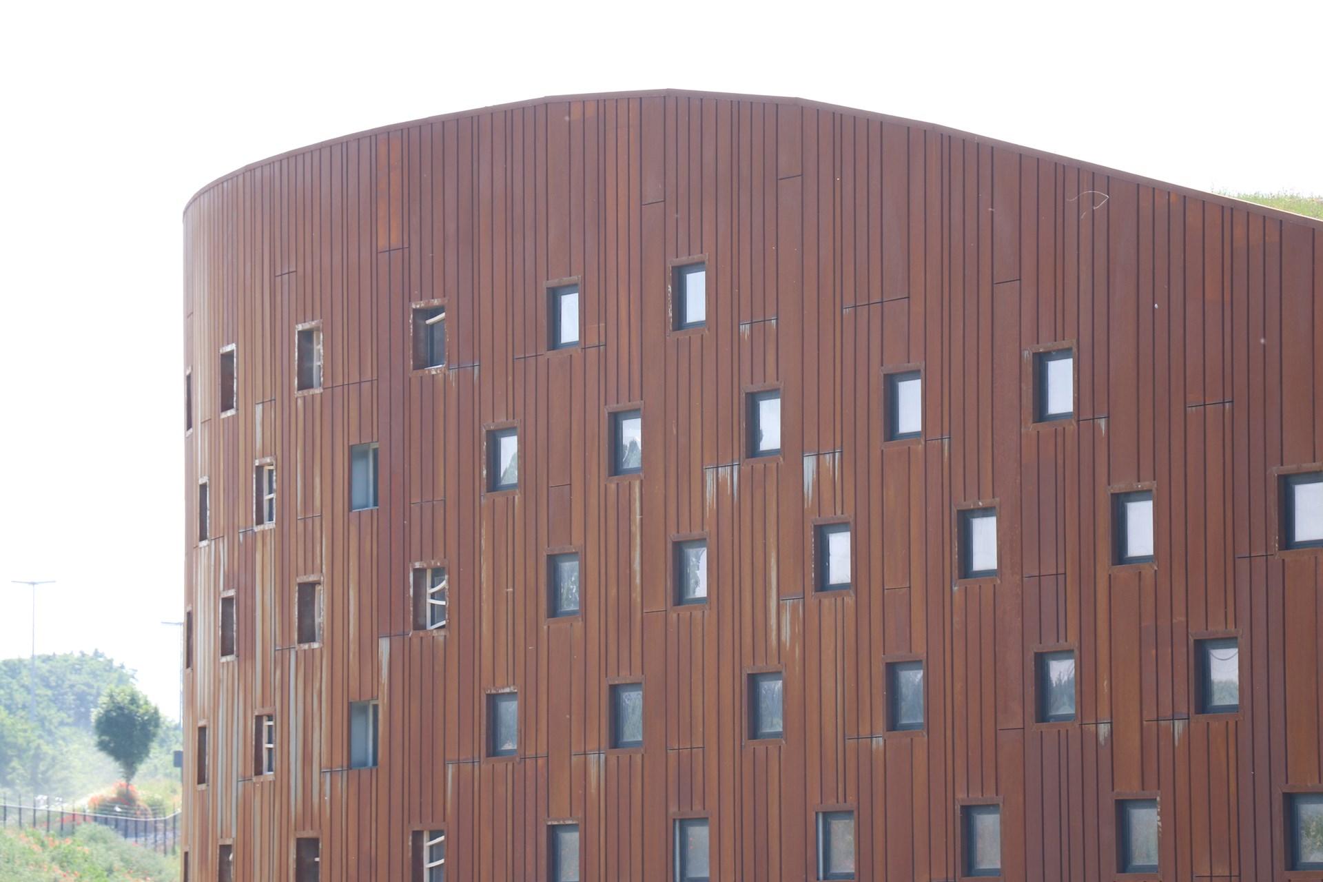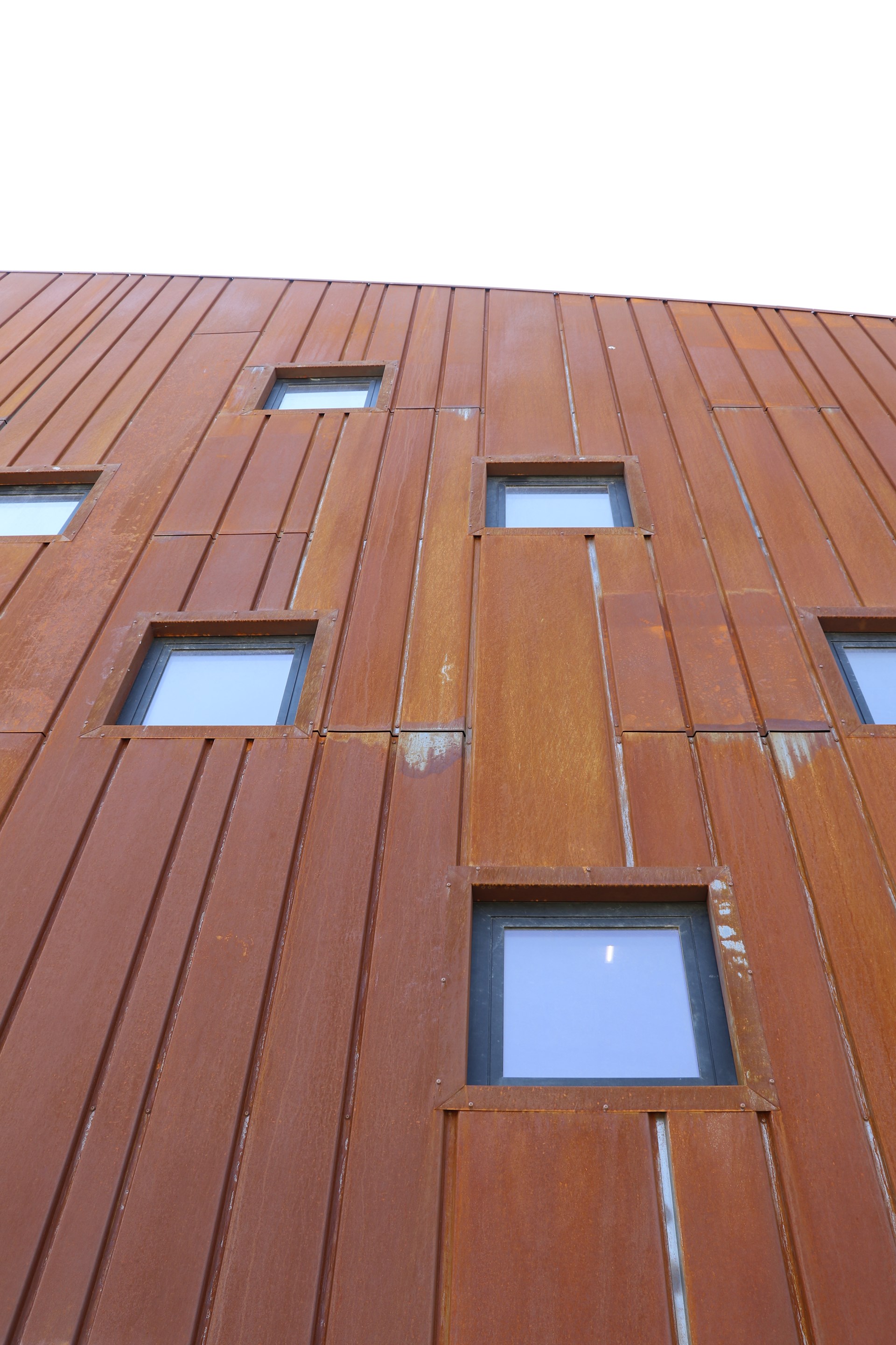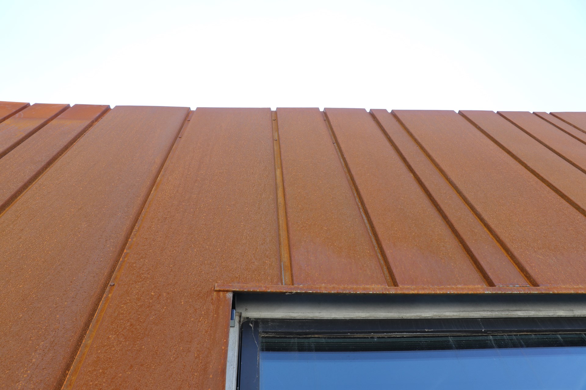 Specificatie: Gevelprofielen, afwerking weervast staal Indaten, bruine roestkleur