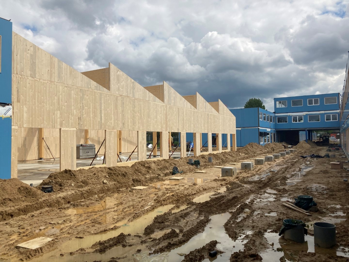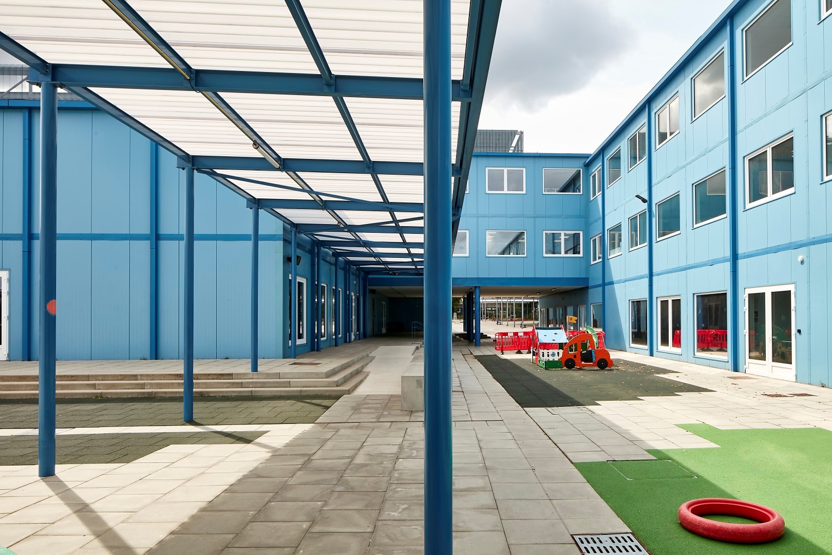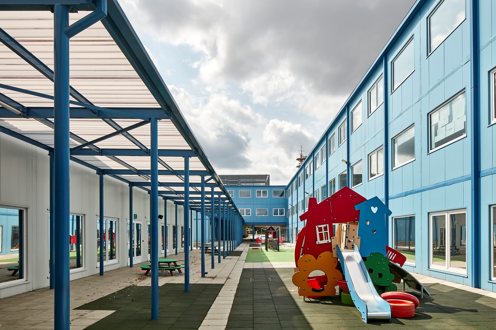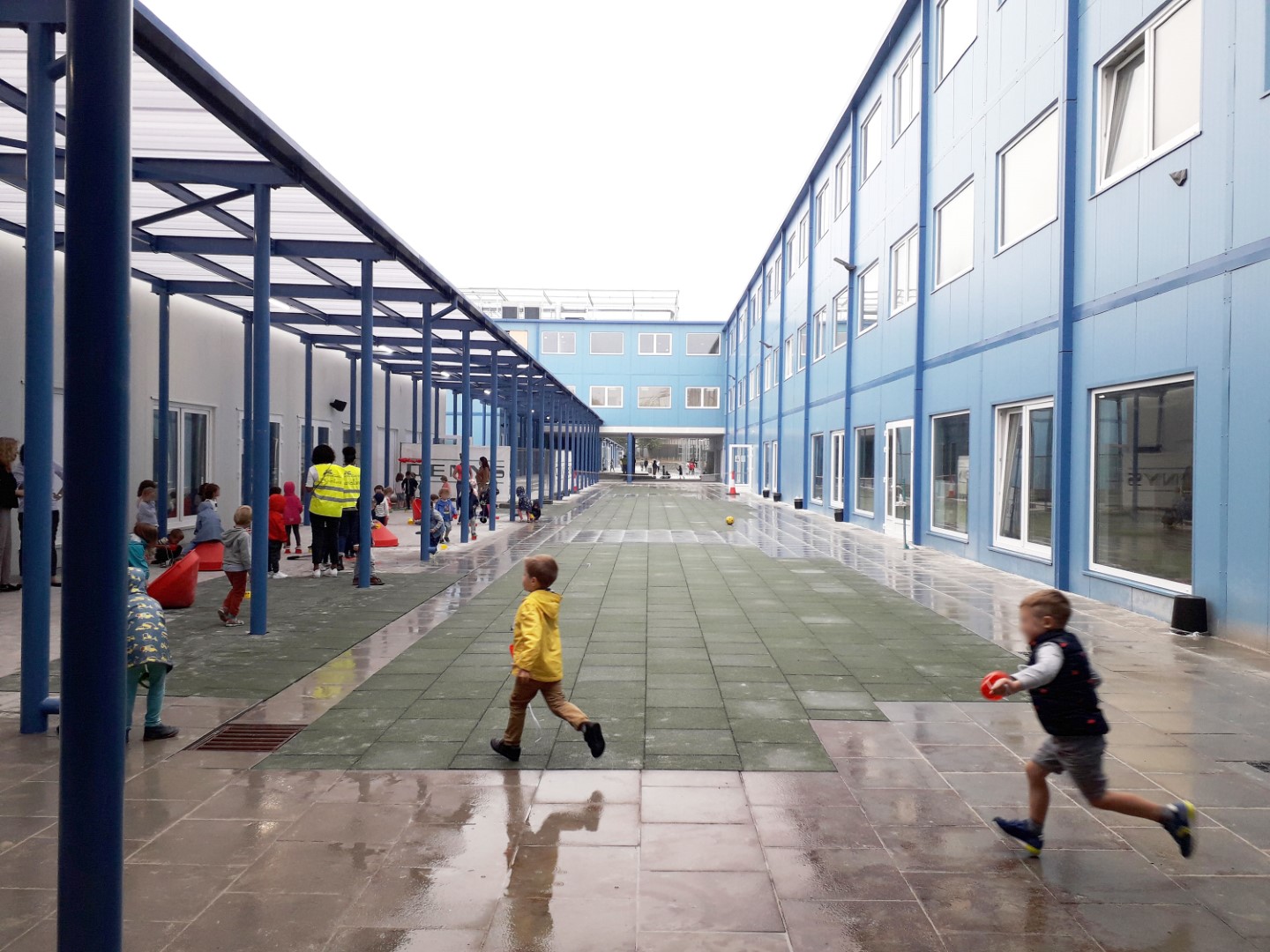 In afwachting van de bouw van ‘Europese School V Brussel’, schreef de Regie der Gebouwen een (DBM-)wedstrijd uit om een tijdelijke school op te richten, op de parking van het voormalige NAVO-hoofdkwartier in Haren. Abscis Architecten las de kern van de opdracht als volgt: op een kostenefficiënte, gebruiksvriendelijke en klimaatvriendelijke wijze, en met een zeer beperkte plannings- en bouwtijd, een tijdelijke school bouwen waarin kinderen een belangrijk deel van hun jeugd op een kwalitatieve manier kunnen doorbrengen.