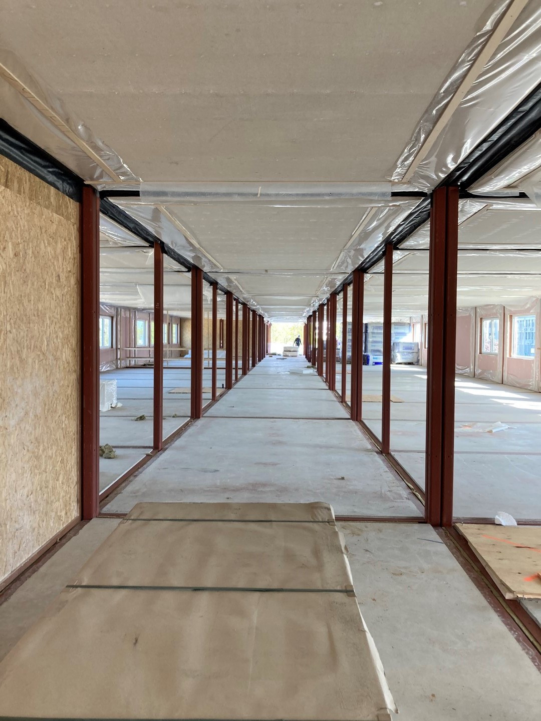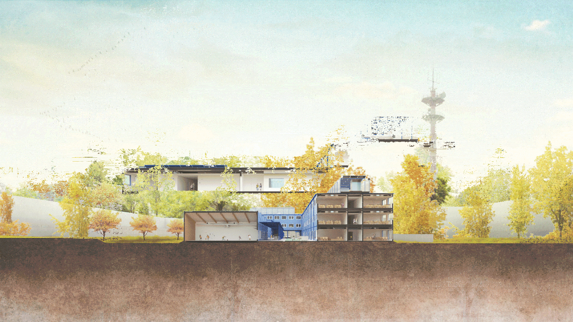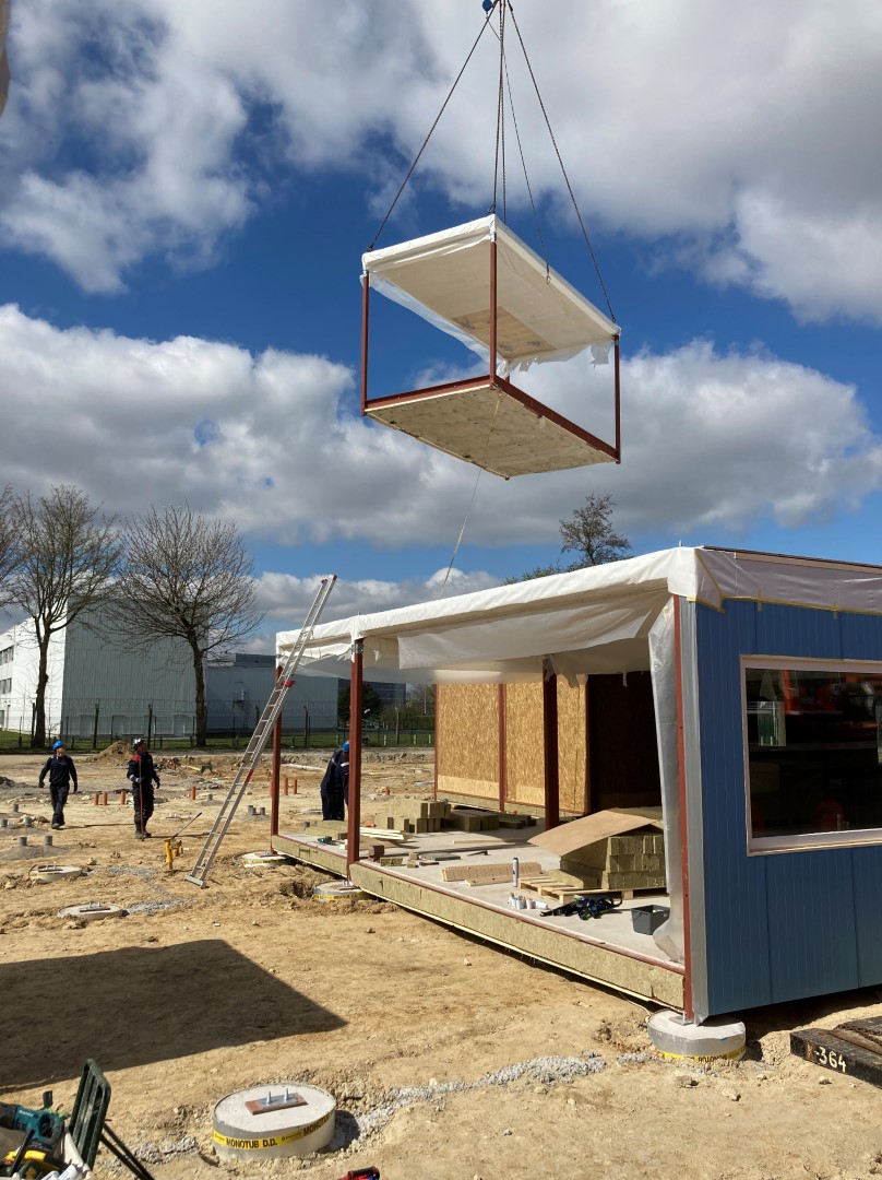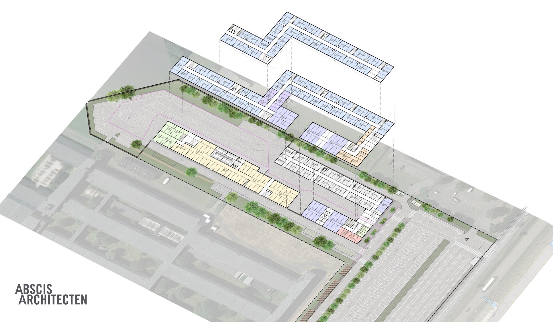 In afwachting van de bouw van ‘Europese School V Brussel’, schreef de Regie der Gebouwen een (DBM-)wedstrijd uit om een tijdelijke school op te richten, op de parking van het voormalige NAVO-hoofdkwartier in Haren. Abscis Architecten las de kern van de opdracht als volgt: op een kostenefficiënte, gebruiksvriendelijke en klimaatvriendelijke wijze, en met een zeer beperkte plannings- en bouwtijd, een tijdelijke school bouwen waarin kinderen een belangrijk deel van hun jeugd op een kwalitatieve manier kunnen doorbrengen.
