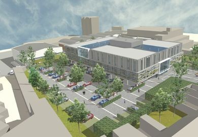 Het nieuwe gebouw van TMVW (Tussengemeentelijke Maatschappij van Vlaanderen voor Waterbedeling) is een compact volume dat uit vier bouwlagen bestaat. De eerste twee bouwlagen, waarvan de eerste zich onder het maaiveld bevindt, zijn gereserveerd voor onder meer parkeergelegenheid. De bovenste twee bouwlagen bestaan uit kantoorruimtes en een meeting center.