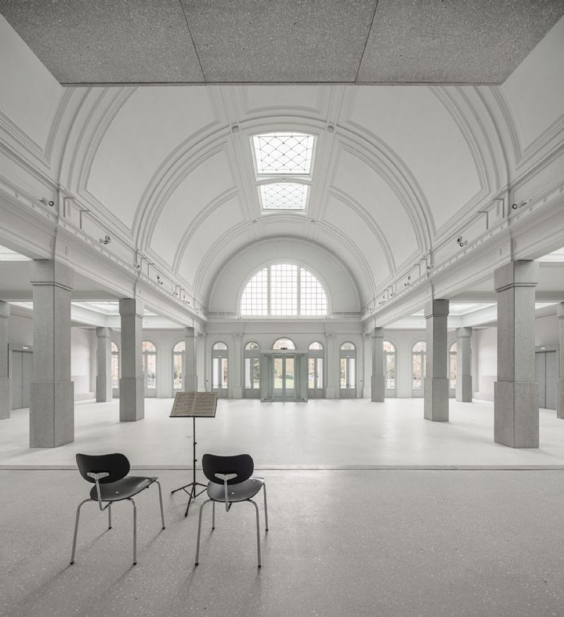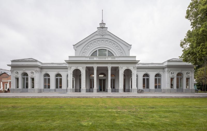 De historische concertzaal De Harmonie in Antwerpen heeft zopas een tweede leven gekregen als districtshuis, stadsloket en evenementenruimte. Met hun ontwerp restaureerden Atelier Kempe Thill en RE-ST De Harmonie als monument en brachten het gebouw grotendeels terug naar zijn oospronkelijk beeld. Ook het park werd hersteld in de geest van de 19de eeuw. De landschapstuin vormt het kader van het gebouw en staat ermee in dialoog.