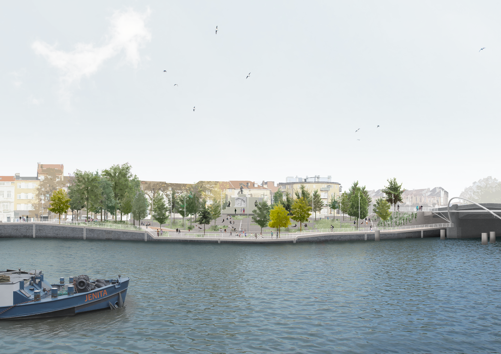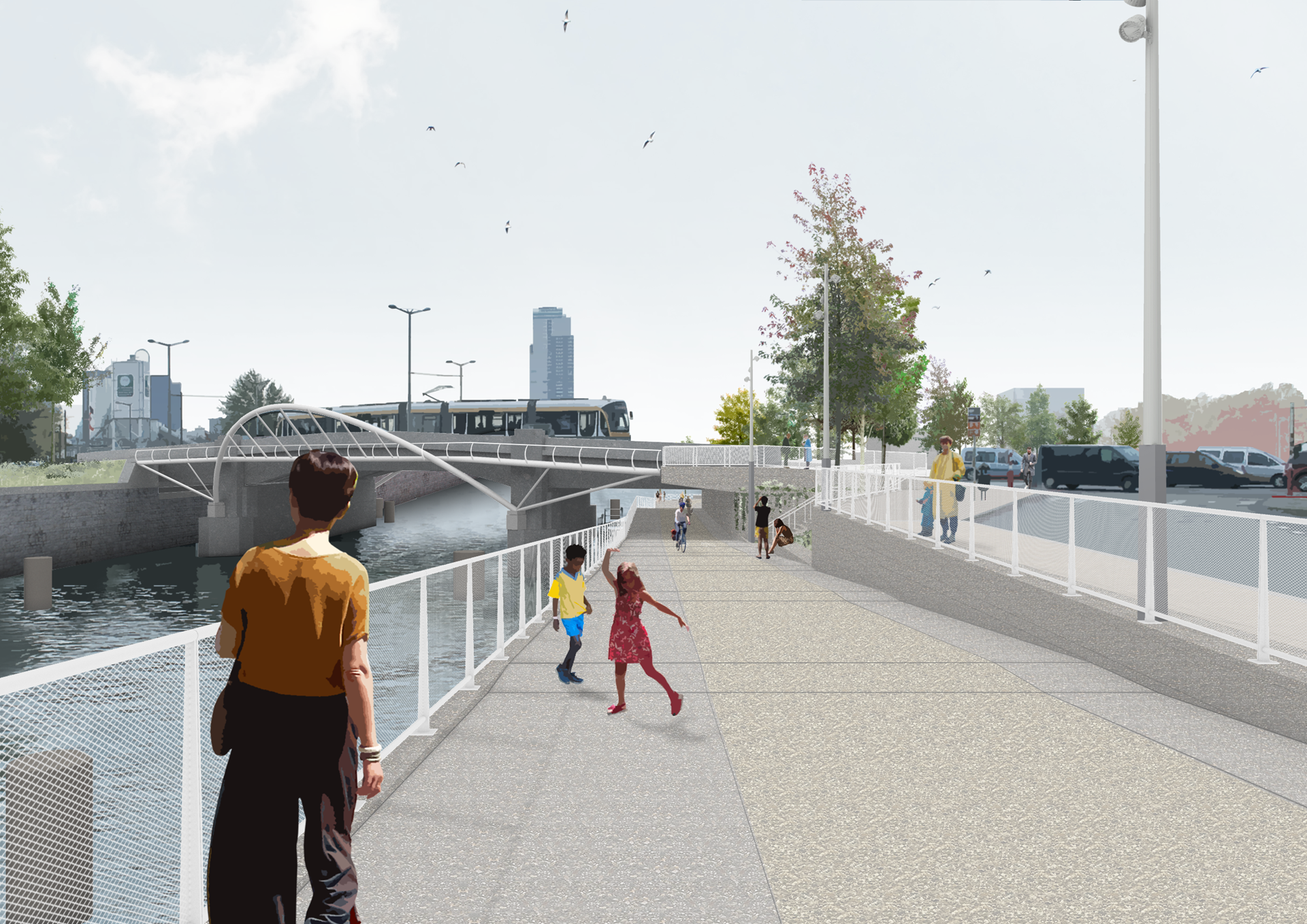 Urban.brussels leverde een gewijzigde bouwvergunning af aan Brussel Mobiliteit voor de heraanleg van het plein aan het Monument voor de Arbeid én voor de bouw van een nieuwe fietsers- en voetgangersbrug onder de Jules de Troozbrug. Concreet omvatten de wijzigingen vooral een vergroening over het hele project, een aangepaste heraanleg van de esplanade langs het water, de creatie van een halte voor de waterbus en een betere afscheiding van de voetgangers en fietsers van het gemotoriseerd verkeer.