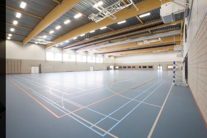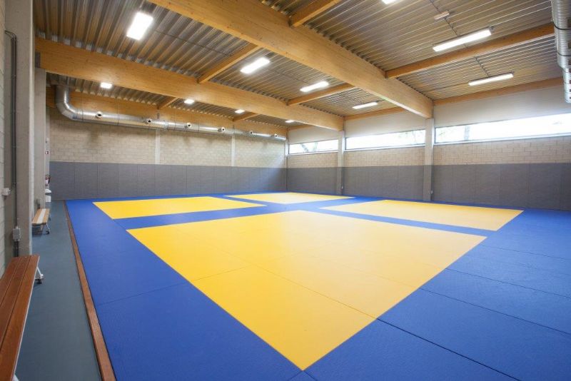 Een polyvalent complex met een grote sportzaal, drie kleinere ruimtes voor dans en gevechtssporten en een aanpalende sportbar met weids terras.