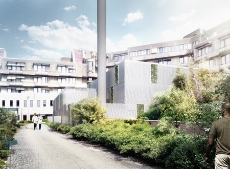 Het bestaande cyclotrongebouw bevindt zich werkelijk in de kern van het UZ op de campus Gasthuisberg. De voorziene uitbreiding omvat een volledig nieuw programma voor commerciƫle productie van FDG, te realiseren op een bestaand dakterras boven de cyclotron. Op hetzelfde niveau bevinden zich de laboratoria van de conventionele radiofarmacie waarvan een groot gedeelte tijdens de verbouwingen moet blijven functioneren. Op het onderliggende niveau bevindt zich de cyclotron met aangrenzende nevenlokalen, het programma beperkt zich hier tot de herinrichting van het quality-control labo en de inpassing van een goederenlift naar het bovenliggende niveau.