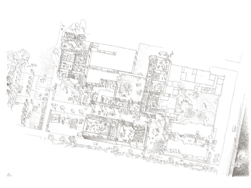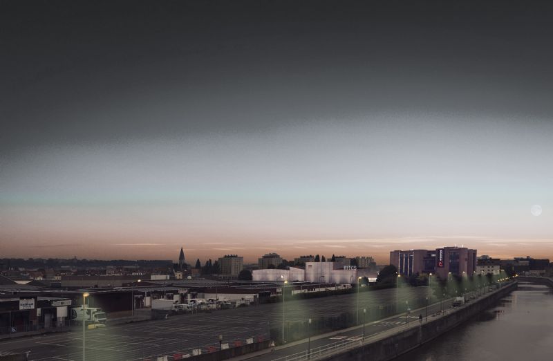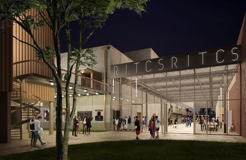 TRANS architectuur | stedenbouw ontwerpt i.s.m. V+ een nieuwe film- en theaterstudio voor het RITCS in Brussel. Het nieuwe volume wordt aangevuld met een overdekte galerij die ontmoeting op de campus langs het kanaal in Brussel mogelijk maakt. De magazijnen in het bestaande gebouw worden heringericht als repetitiestudio’s. Om zo veel mogelijk te kunnen investeren in de technieken, hebben TRANS en V+ de ruwbouwkost sterk beperkt zonder in te boeten op uitstraling en kwaliteit. Het resultaat is een ruwe betonnen structuur met een opvallende omlijning in nobele materialen, een interessant silhouet langs het kanaal.