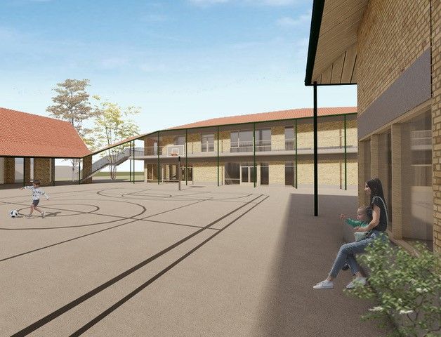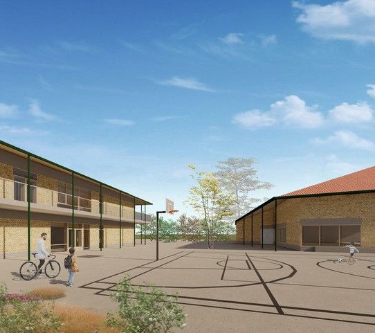 De twee vestigingen van basisschool De Ooievaar in Poelkapelle worden samengebracht op één site, de Nieuwplaats in de dorpskern. De huidige schoolsite wordt herontwikkeld tot brede schoolcampus, die de volledige basisschool, de buitenschoolse kinderopvang en een sportschuur integreert. De schoolgebouwen zijn ontworpen in eenzelfde taal als het stedenbouwkundig weefsel van het dorp.