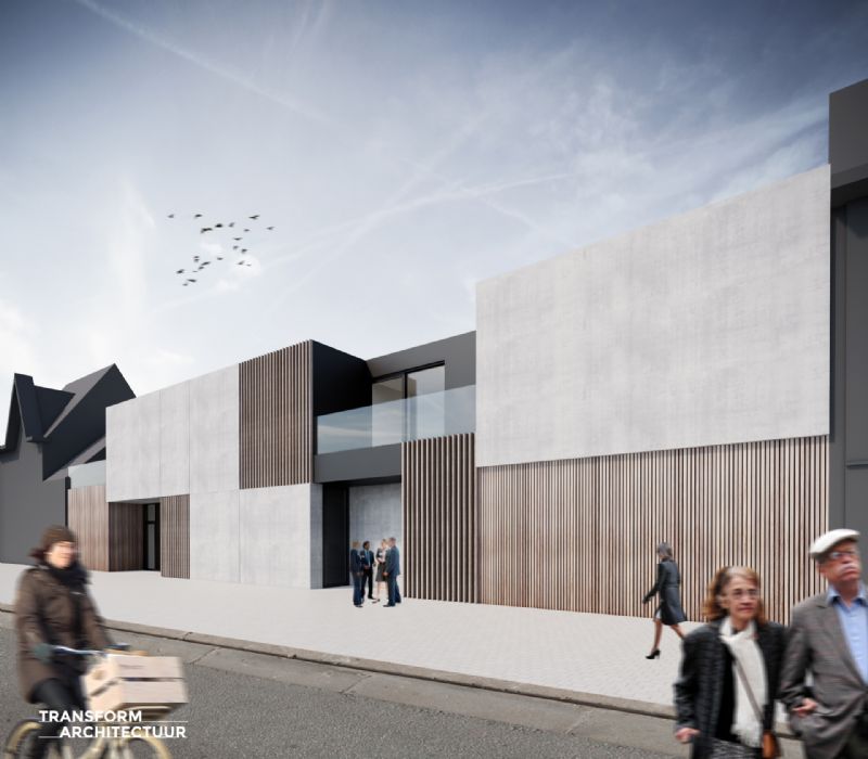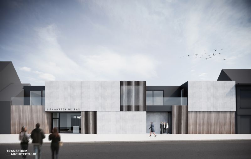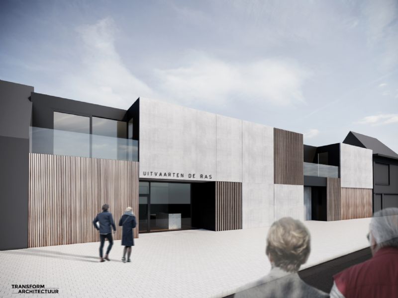 Uitvaarten De Ras wenst hun activiteiten verder uit te bouwen. Met een nieuwe vestiging in Berlare zet Uitvaarten De Ras volop in op groei. Dit gemengd project op een moeilijk perceel is het antwoord op deze ambities.