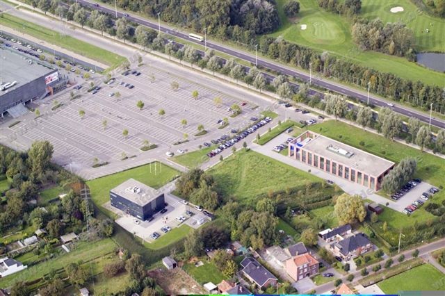 Bovenaan het gebouw van TV Limburg naar een ontwerp van De Gregorio & Partners. Onderaan het gebouw van Radio 2 Limburg, ontworpen door Cepezed en gebouwd door Strabag. In Kortrijk werd identiek hetzelfde gebouw gerealiseerd voor Radio 2 West-Vlaanderen.