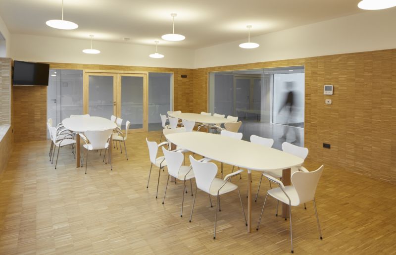 Villa Rosa in Sint Truiden combineert ouderenzorg met kinderopvang. Het gebouw en de inrichting moesten dan ook aansluiten bij deze twee verschillende generaties en voldoende stimulerend zijn. Kleur en indeling zorgen voor een thuisgevoel.