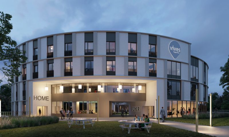 Studenten van VIVES kunnen vanaf 2022 niet alleen les volgen aan de hogeschool in Brugge, maar er ook verblijven. Samen met projectontwikkelaar ION bouwt VIVES een gloednieuw complex met 19 leslokalen én 138 studentenkamers, dat naadloos aansluit op de bestaande campus. Zo wordt VIVES City meteen de eerste echte ‘leefcampus’ in Vlaanderen.