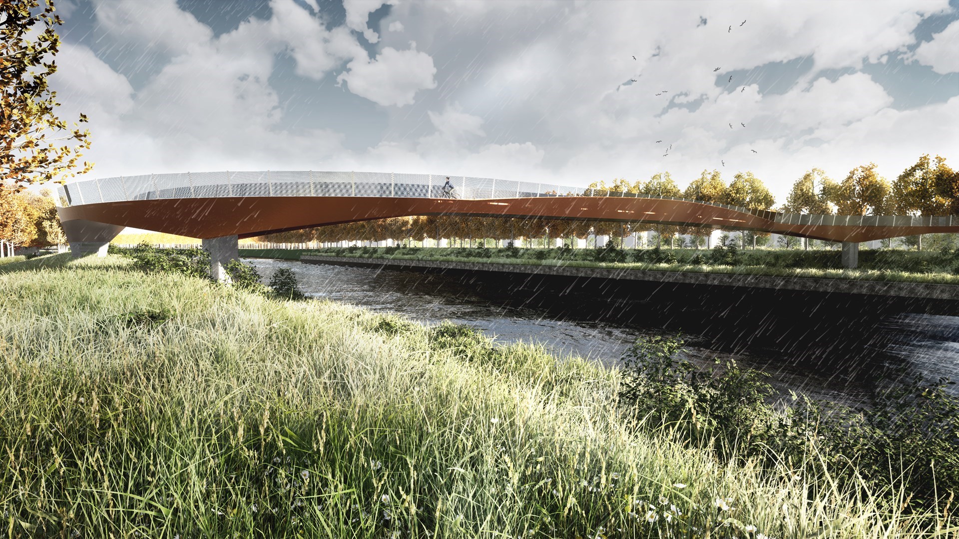 De Vlaamse Waterweg gaf studie- en bouwkundig bureau SBE de opdracht een fietsers- en voetgangersbrug te ontwerpen die de rivier op een comfortabele manier overspant zonder het kanaallandschap of de ecologische waarde ervan te verstoren. SBE ontwierp daarom een sobere, nuchtere brug die harmonieert met zijn omgeving.