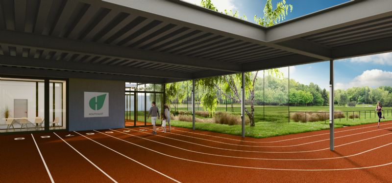 De vrijetijdscampus komt op de terreinen rond de huidige sporthal in de Jonkershovestraat en omvat zowat 7,4 hectare. De campus wordt een compleet nieuwe site waarbij de bestaande gebouwen gerenoveerd en geïntegreerd worden in een amalgaam van nieuwe multifunctionele gebouwen voor sport en cultuur. De outdoor sportterreinen worden heraangelegd met o.m. twee nieuwe voetbalvelden, een voetbaltribune met kantine, en twee padelterreinen. Uniek is dat alle gebouwen en buitenterreinen met elkaar verbonden worden door een rood steentapijt dat refereert aan een baan uit een atletiekpiste en zich als een logische (be)wegwijzer(ing) manifesteert tussen indoor en outdoor.