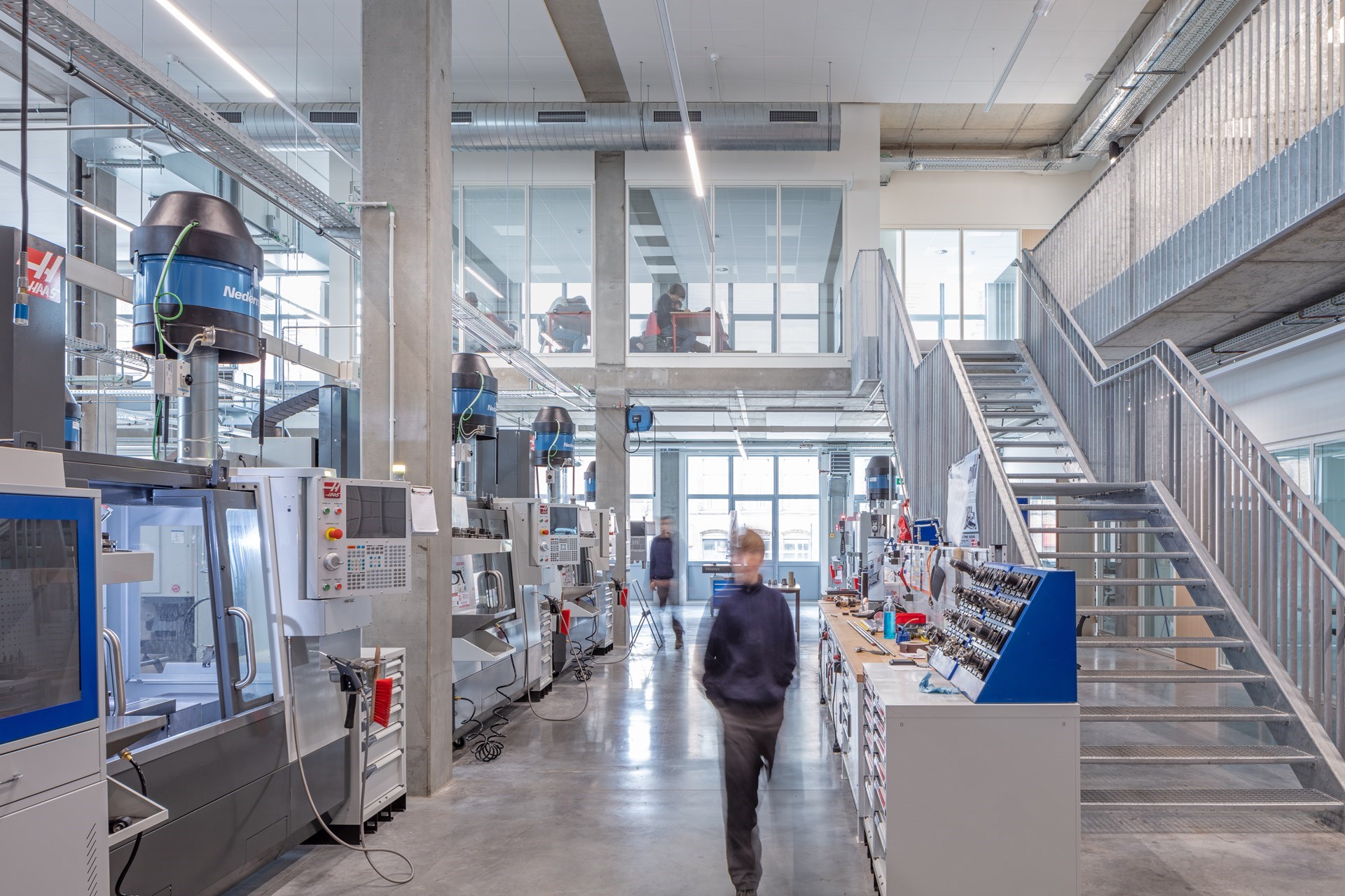 De school is een mix van werkplaatsen, ateliers en leerpleinen met theorielokalen en een grote sporthal die samen een oppervlakte beslaan van 17.500 m2. Van den Berg Architecten creƫerde een robuust en aanpasbaar gebouw met een herkenbare en technische uitstraling.