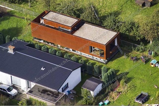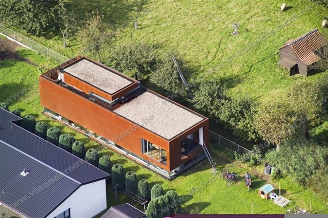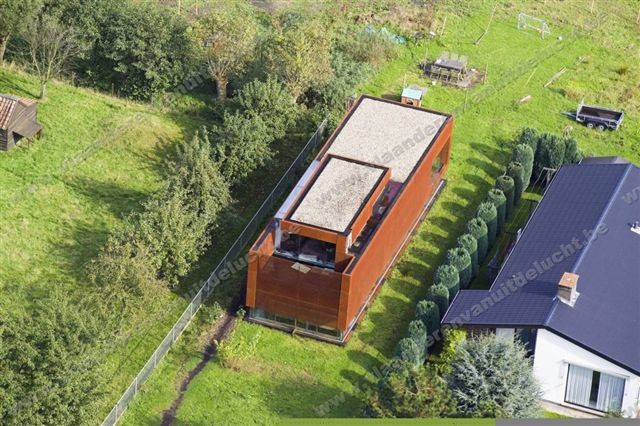 Passiefwoning waarvan geven bekleed werd met Cortenstaal