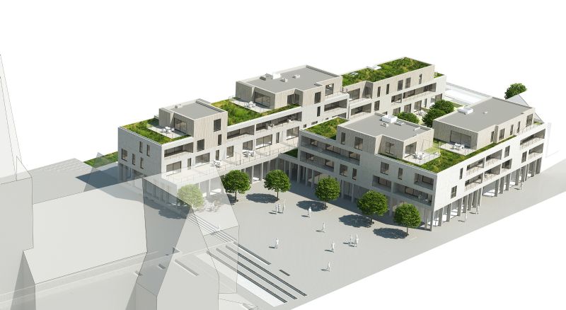 Woonproject De Monade zorgt voor een aangename en herkenbare dorpskern in Kwaadmechelen. Projectontwikkelaar Cordeel staat in voor de bouw van 31 nieuwe appartementen en 1200m² commerciële ruimte in de deelgemeente van Ham. Het ontwerp komt van het Hasseltse bureau a2o-architecten. Samen met de herinrichting van het Kerkplein geeft het project vorm aan het nieuwe centrum van de gemeente.