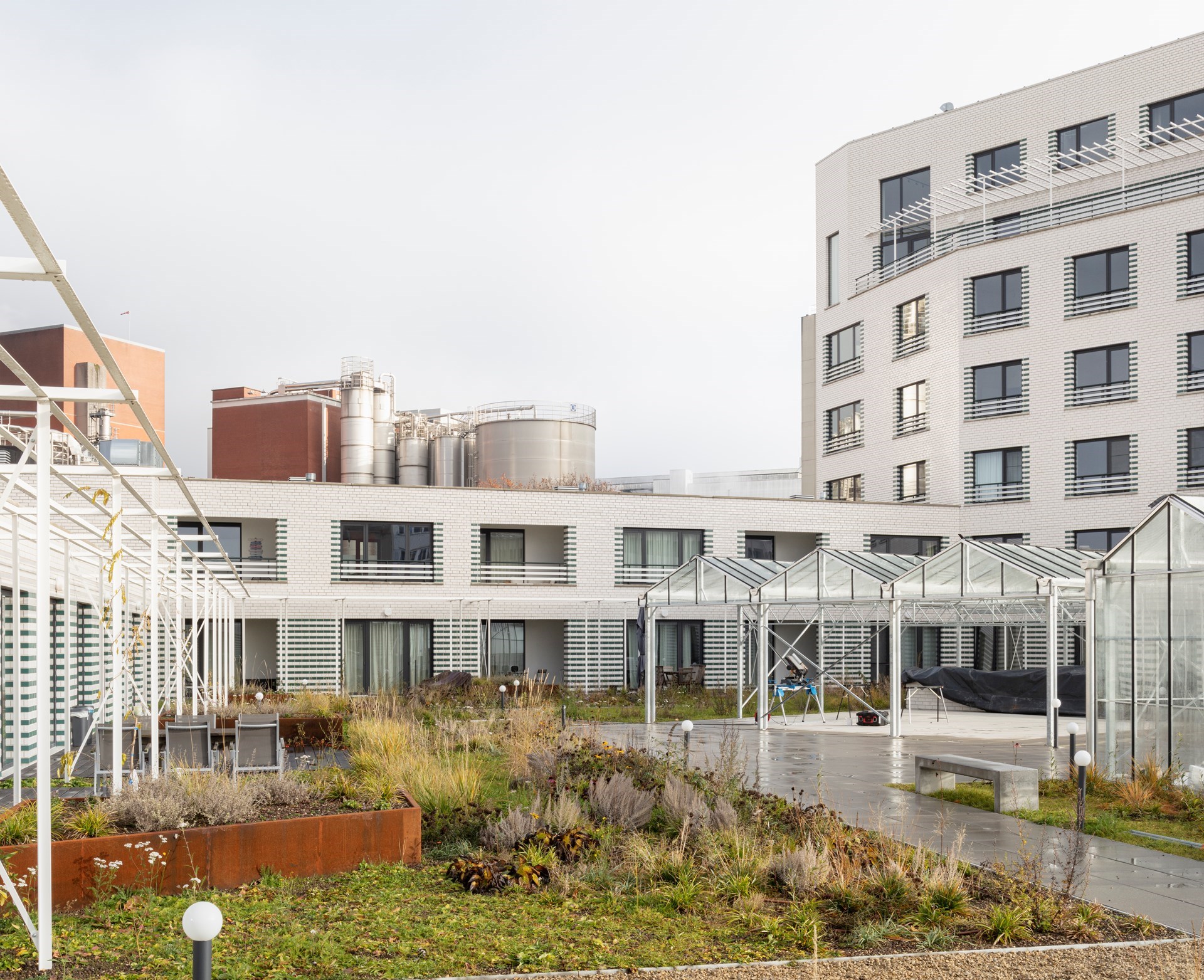 Op het kruispunt tussen de gemeentes Berchem en Mortsel, middenin een industriële site, realiseerde architectenbureau FVWW een wooncomplex met grootstedelijke ambities. Het Zilverkwartier, geflankeerd door de Agfa Gevaert-site en lage woningbouw, gaat harmonieus op in zijn eclectische omgeving, zonder aan identiteit te moeten inboeten. Het alzijdige woonblok met zijn collectieve tuin, supermarkt en herkenbare identiteit faciliteert ontmoeting, uitwisseling en ontwikkeling. Wouter Willems (FVWW): “Het Zilverkwartier reikt de hand naar zijn huidige en toekomstige omgeving en gebruikers.”