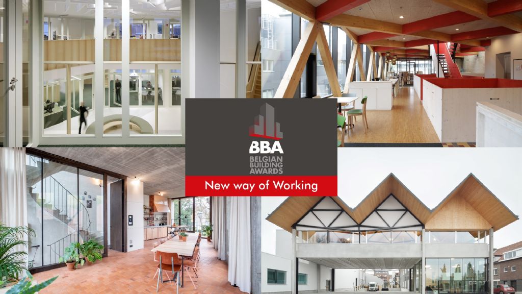 Les nouvelles manières de travailler sont une autre tendance mise en avant par les Belgian Building Awards. Avec la catégorie New Way of Working, le jury a voulu distinguer des aménagements de bureaux originaux qui participent au bien-être des travailleurs. 4 projets ont été nominés : Centre administratif communal à Sint-Gillis-Waas par Architecten Els Claessens en Tania Vandenbussche, Rénovation et extension de COOP à Gand par Dial Architects, Kruul à Louvain par DMOA architecten et Ryhove Urban Factory à Gand par Trans.