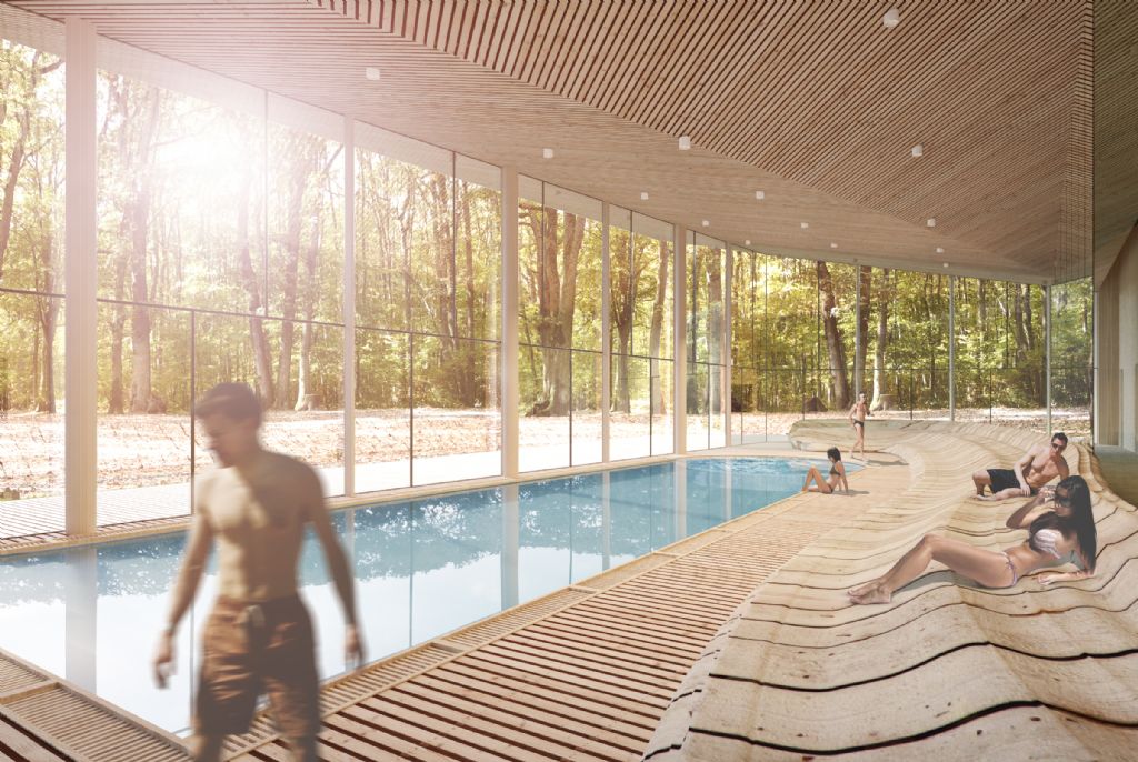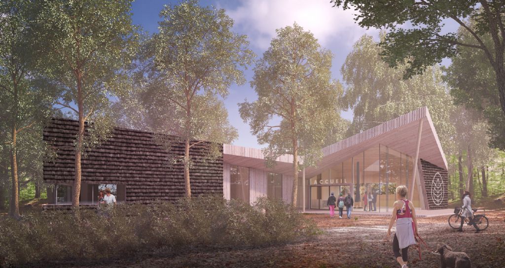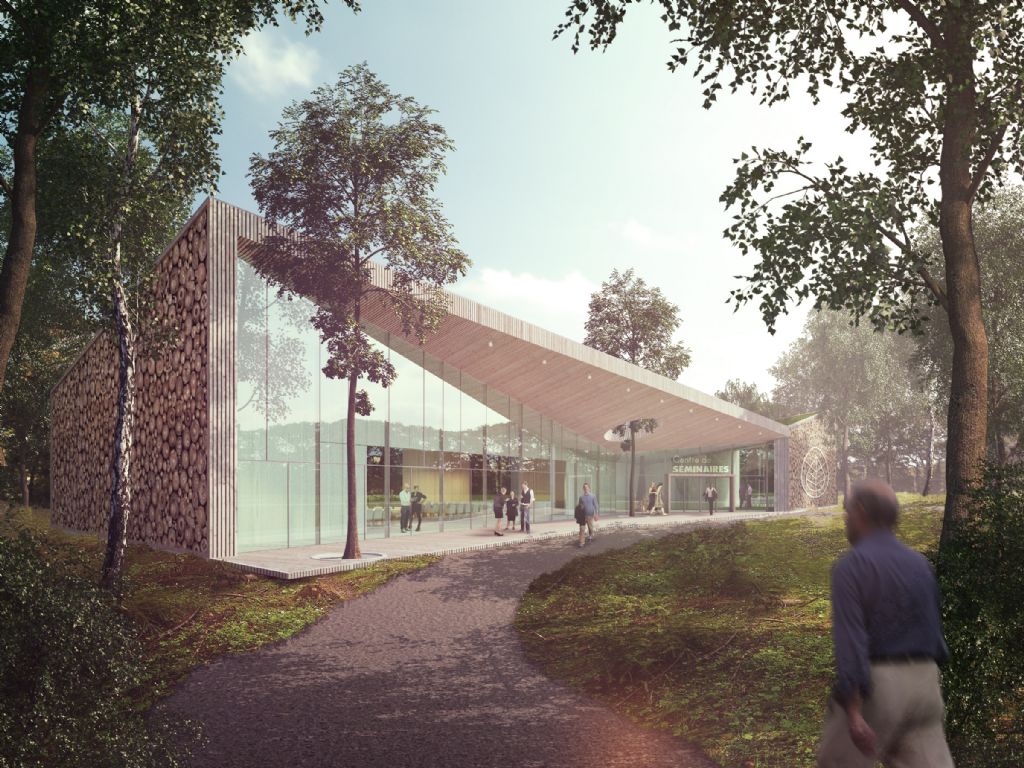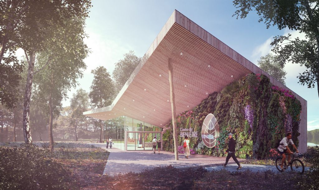 Le concept architectural du projet tient des univers récréatifs qui reflètent la quintessence de la nature par une métaphore de son cycle et des 4 éléments de la nature. Chaque bâtiment revêt une singularité d’aspect en relation avec sa fonction jusqu’à son matériau de façade. Par exemple, la fleur symbolise le plaisir, lui-même concrétisé en centre de bien-être revêtu d’un mur floral. Les bâtiments présenteront chacun un traitement spécifique de leurs matériaux de façades, tous naturels : bardeaux, ondes, rondins ou lattis de bois couverts de végétation et murs floraux qui symbolisent le cycle de régénérescence de la nature. Ce véritable dialogue architectural s’intègre sous le couvert forestier pour mêler le singulier à l’homogénéité et conférer une harmonie naturelle à l’ensemble du projet.