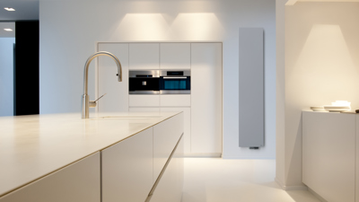 phare d'une salle de séjour, d'une cuisine ou d'un salon et garantit une association esthétique avec d’autres éléments intérieurs, matériaux et couleurs. Alors que les couleurs de terre et le noir mat étaient populaires ces 2-3 dernières années, l’or, le bronze et l’argent sont désormais à l’honneur. Des nuances que Vasco qualifie de 'couleurs nobles', portant des noms de métaux de qualité supérieure.