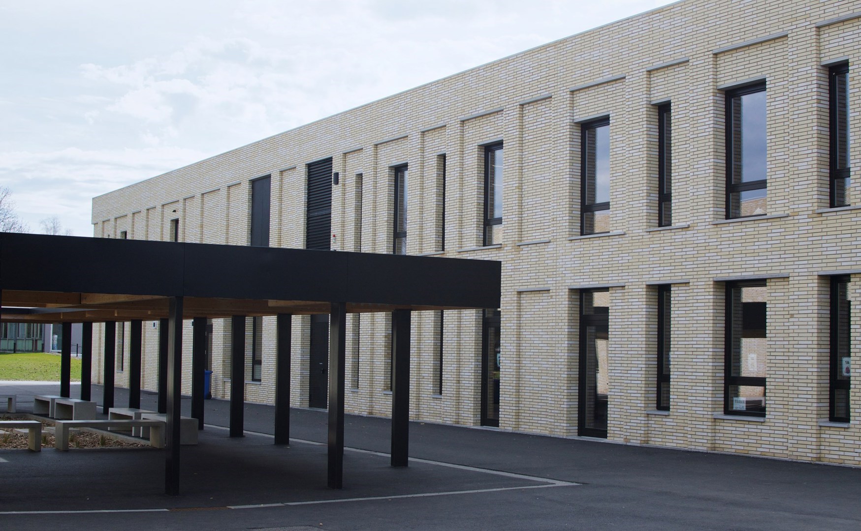 Inaugurée en 2023, l'extension de l'Athénée royal « Les Marlaires » de Gosselies est un projet pilote dans le cadre d'une série de nouvelles écoles en Communauté française. Conçu par le bureau A-Practice, le bâtiment répond à une série de critères de base : des bâtiments préfabriqués, modulaires et facilement réplicables. Un des premiers éléments qui saute aux yeux est la présence abondante du bois.
