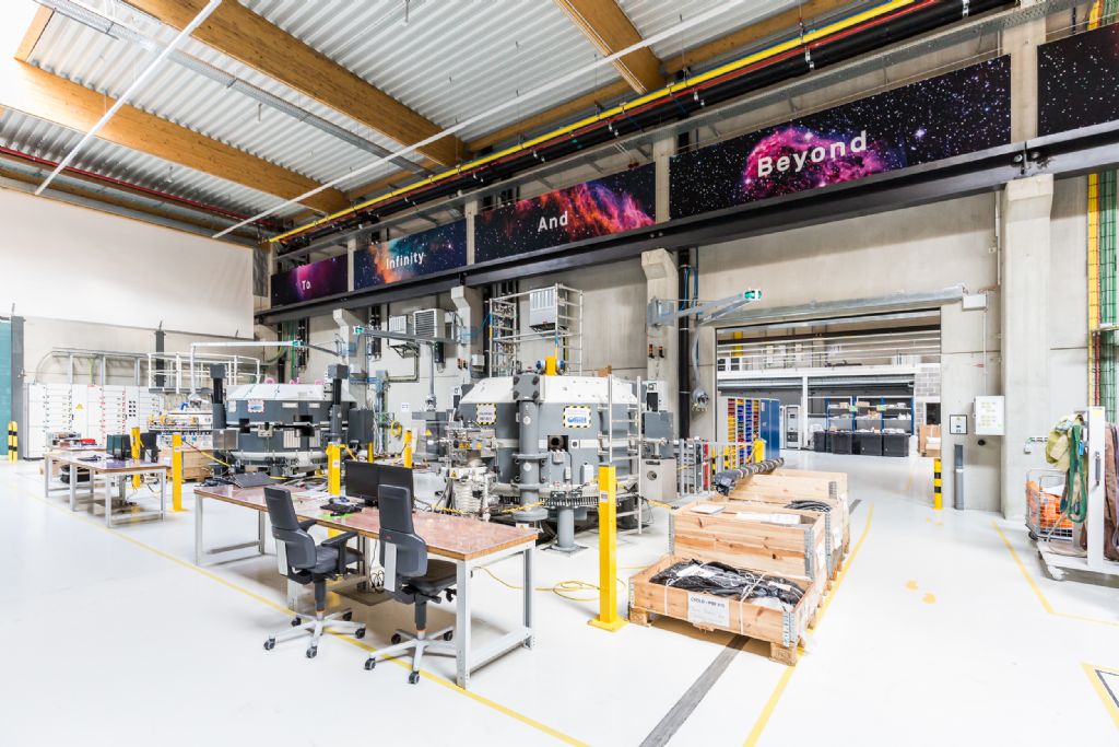 La « Beam Factory » comprend entre autres des zones d’assemblage, de stockage et de test des accélérateurs de particules tandis que les bureaux sont centrés sur l’efficacité et la convivialité. Le tout est réparti sur plusieurs milliers de mètres carrés où sécurité, espace, propreté et lumière naturelle règnent sans faille.