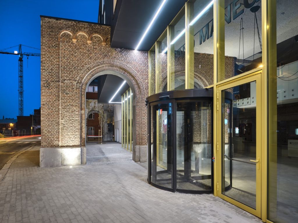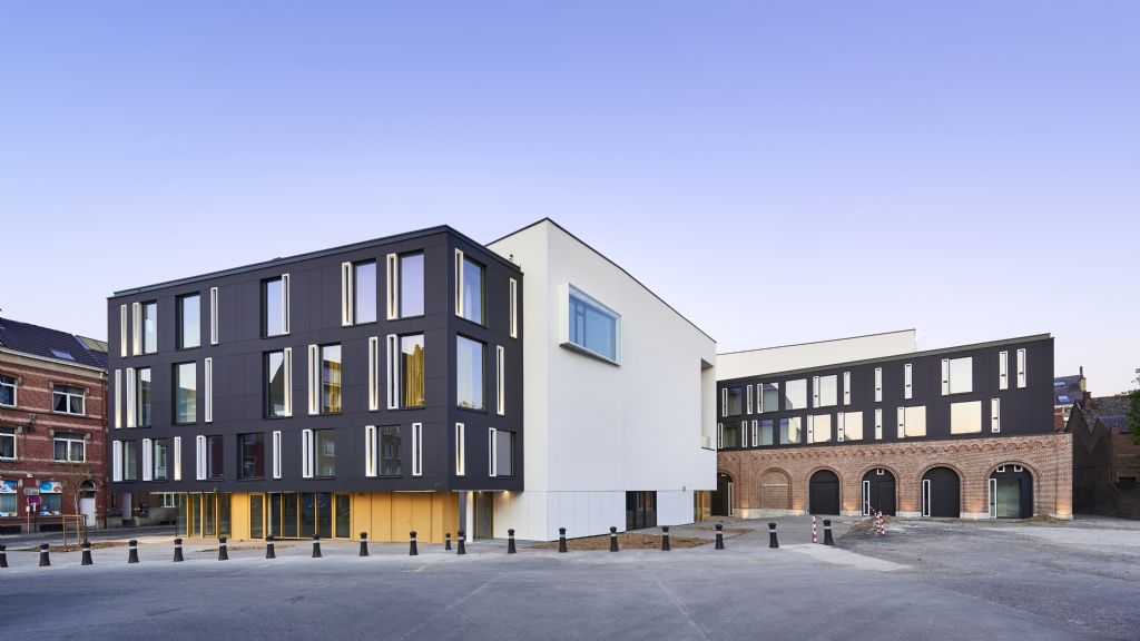 « Le travail de conception a été titanesque pour faire entrer le programme imposé dans le volume possible et raisonnable, mais aussi pour ne pas construire toute la parcelle. On devait aussi rester dans le gabarit actuel de la rue, à savoir rez+3 niveaux. Une autre exigence du projet était de conserver au moins 2 murs du grand manège. On a fait le choix de les conserver tous. On s’inscrit ainsi dans le tissu ancien et on y insère la salle de concerts », expliquent les architectes.