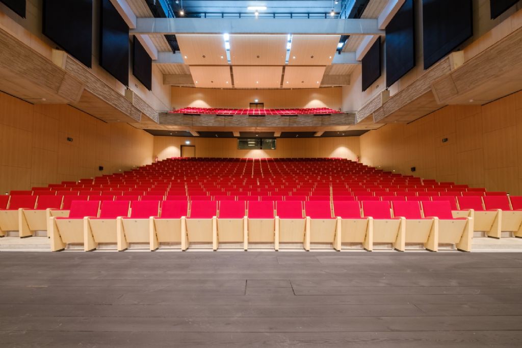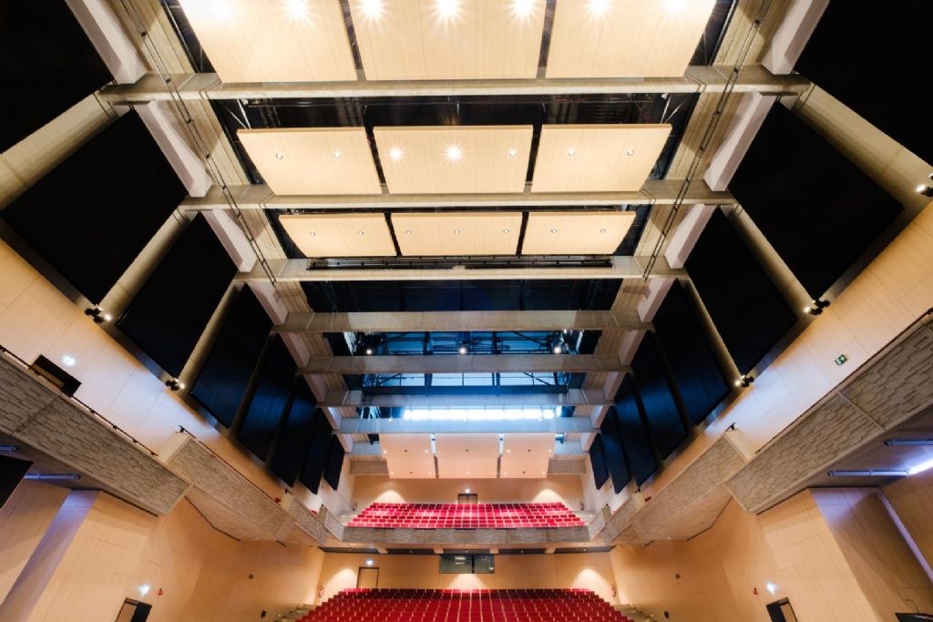 La grande salle de concerts répond à des exigences acoustiques internationales. L’ambition a été définie pour y jouer de la musique classique. Le son doit résonner longtemps, entre 2 et 3 secondes, pour que les differents instruments aient le temps de se mélanger et créer l’effet sonore voulu. Dans les salles dédiées au rock amplifié ou à l’électro, le temps de réverbération est beaucoup plus court pour absorber les basses. Un temps de réverbération long implique d’avoir un grand volume pour que le son ait le temps de résonner à l’intérieur.