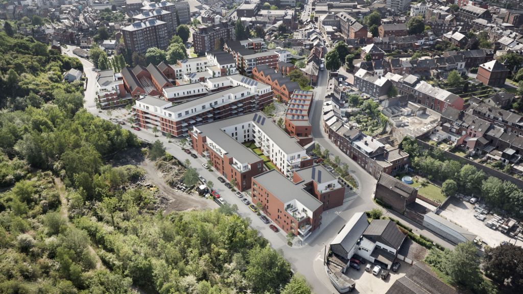 Le principe de la prédominance de la brique en parement de façades est un de ces aspects d’intégration. Ce matériau permet de lier le nouveau projet au bâti plus ancien, en rappelant la prédominance de la terre cuite dans cette partie de Namur, anciennement industrielle.