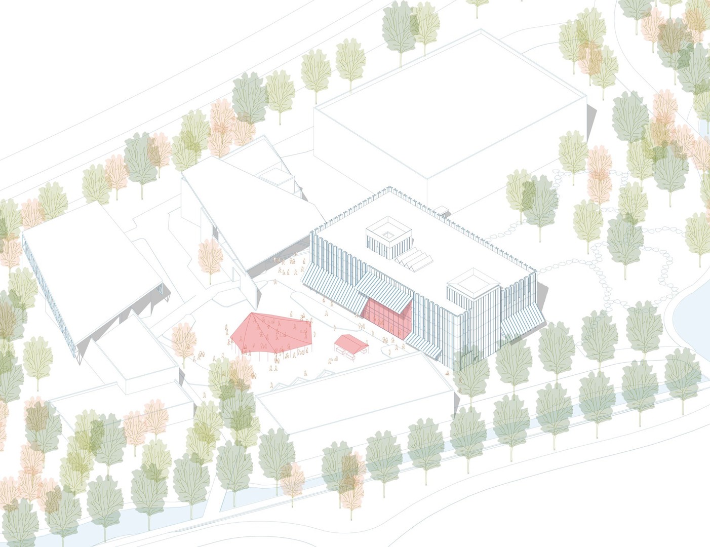 A2o architecten et Broekbakema ont également conçu le bâtiment, avec une entrée sur le côté nord qui se connecte aux principaux chemins de promenade sur le site, de manière à perturber le moins possible le terrain et la nature environnante. À titre d'exemple, le bâtiment sera construit sur une surface déjà « perturbée », il n'y aura pas de sous-sol et toutes les terres excavées trouveront une nouvelle affectation sur le site.